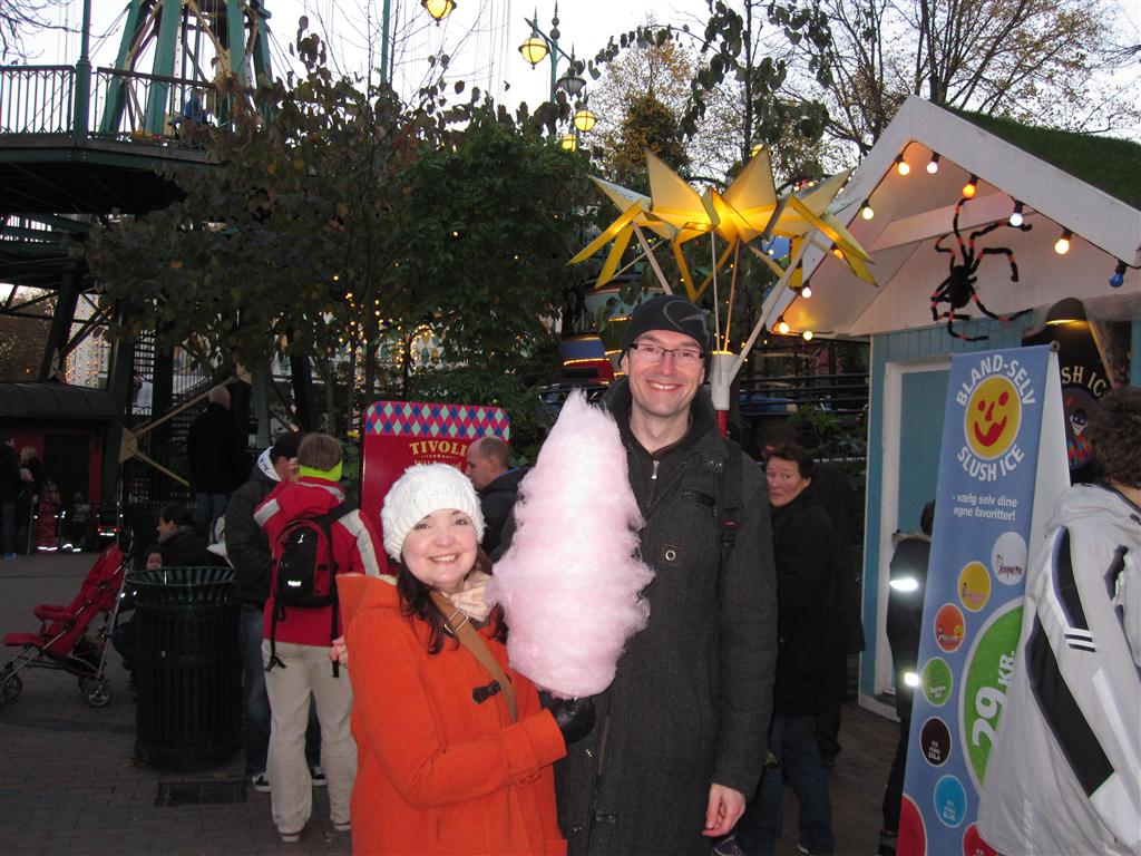 On saturday we did the cultured part of visiting a museum in the morning and appearing very interested in a lot of Roman heads before having a lovely lunch in the winter garden. The afternoon was spent in Tivoli - which is an original fairground in the centre of Copenhagen. It is normally closed after September but they open it at Halloween and Christmas, all decorated for the season. The decorations where impressive and as it got dark the park was lit with lots pumpkin lights! We had a wander, went on the worlds tallest carousel (The star flyer) and bought the most gigantic candy floss I have ever seen. We had to warm up at regular intervals with irish coffees to prevent frost bite ;-)